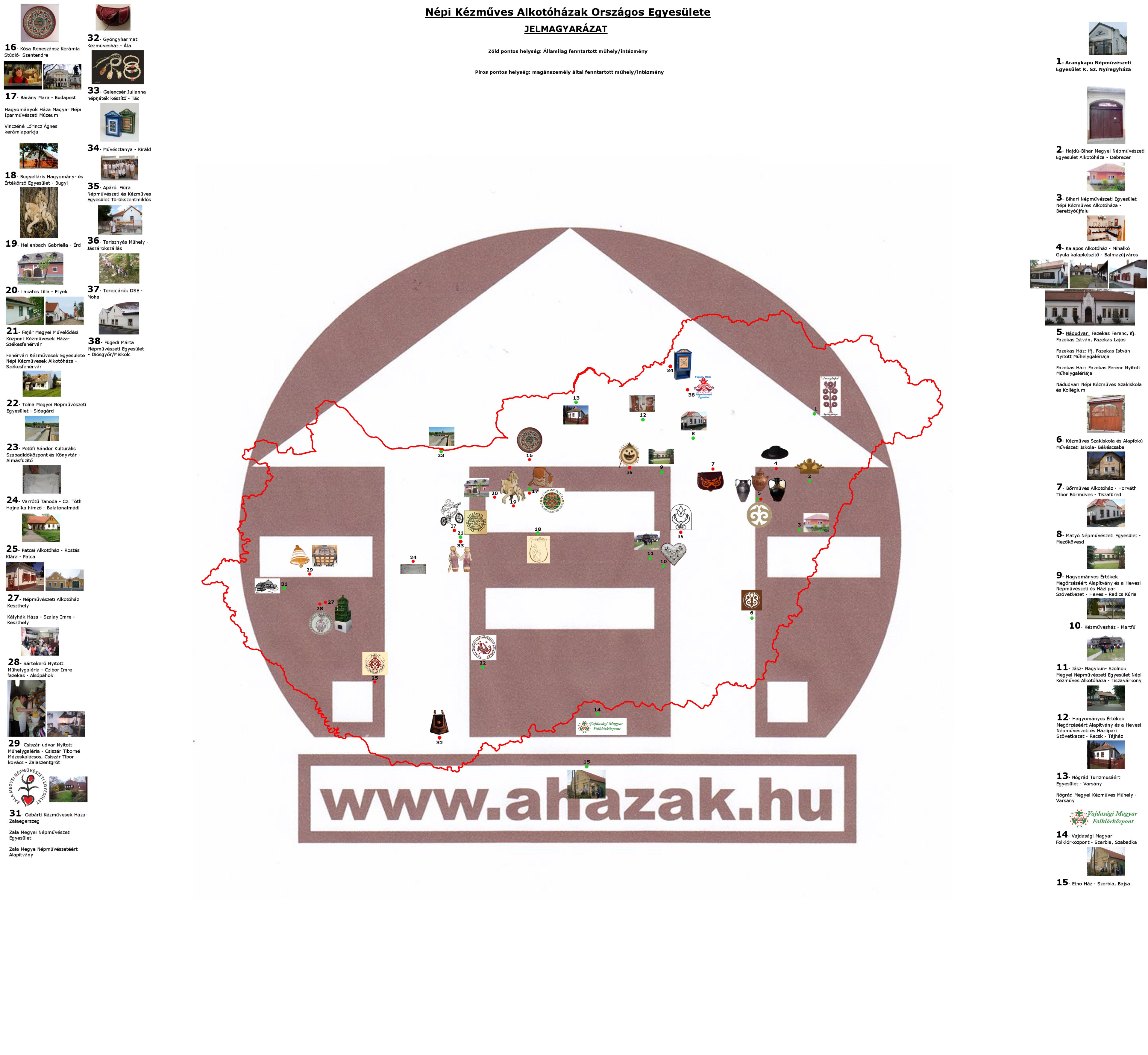 A Népi Kézműves Alkotóházak Országos Egyesületének tagsága térképen